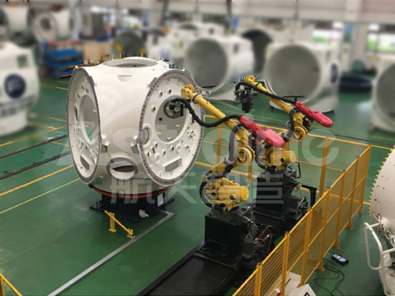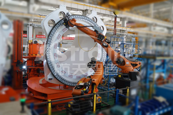 航天智造研制的液壓扳手機器人智能螺栓緊固系統(tǒng),可滿足風電輪轂和風電底座的螺栓裝配的精度和工藝數(shù)據(jù)提取分析,提升生產(chǎn)效率40%以上,解決風機由于螺栓緊固數(shù)據(jù)穩(wěn)定性質(zhì)量百分之百合格全檢數(shù)據(jù)記錄分析,同時可以在訂單負荷大的時候實現(xiàn)生產(chǎn)作業(yè)全天候進行,徹底做到了解放人力,提高生產(chǎn)效率,為穩(wěn)定產(chǎn)品質(zhì)量提供了強有力的支撐。